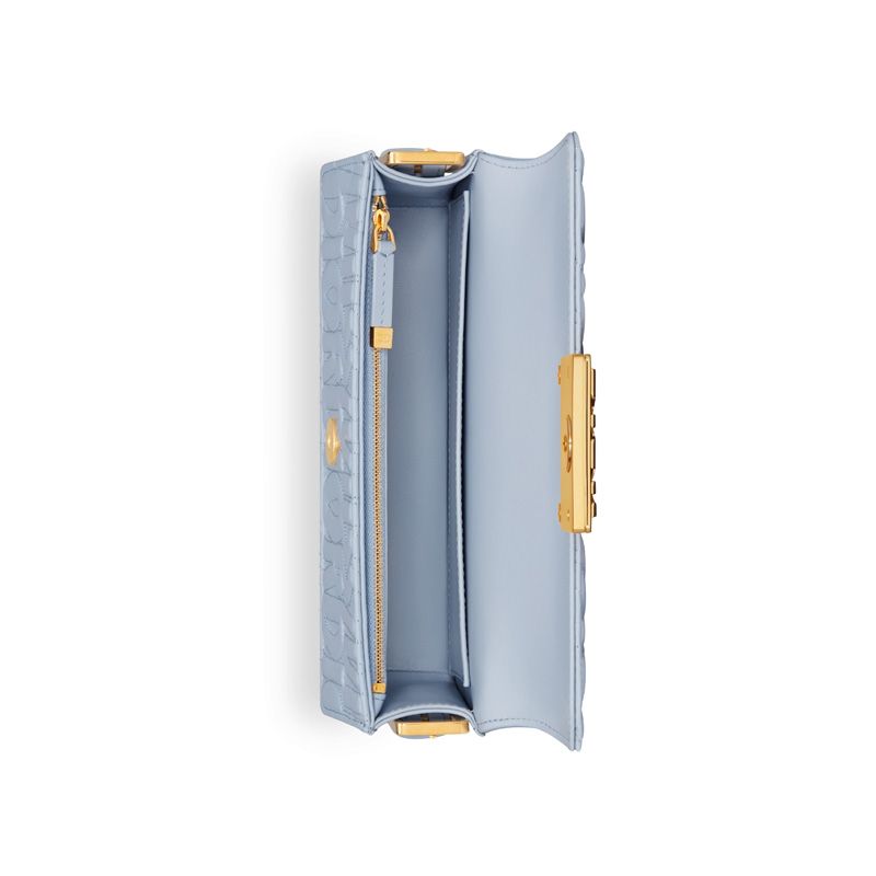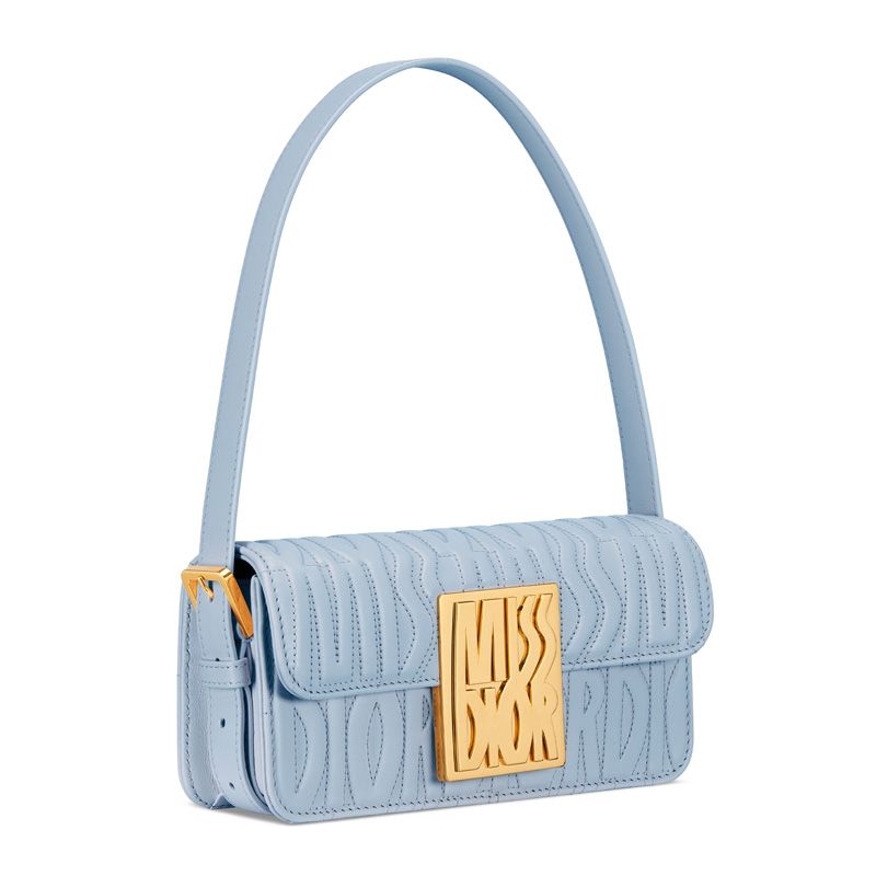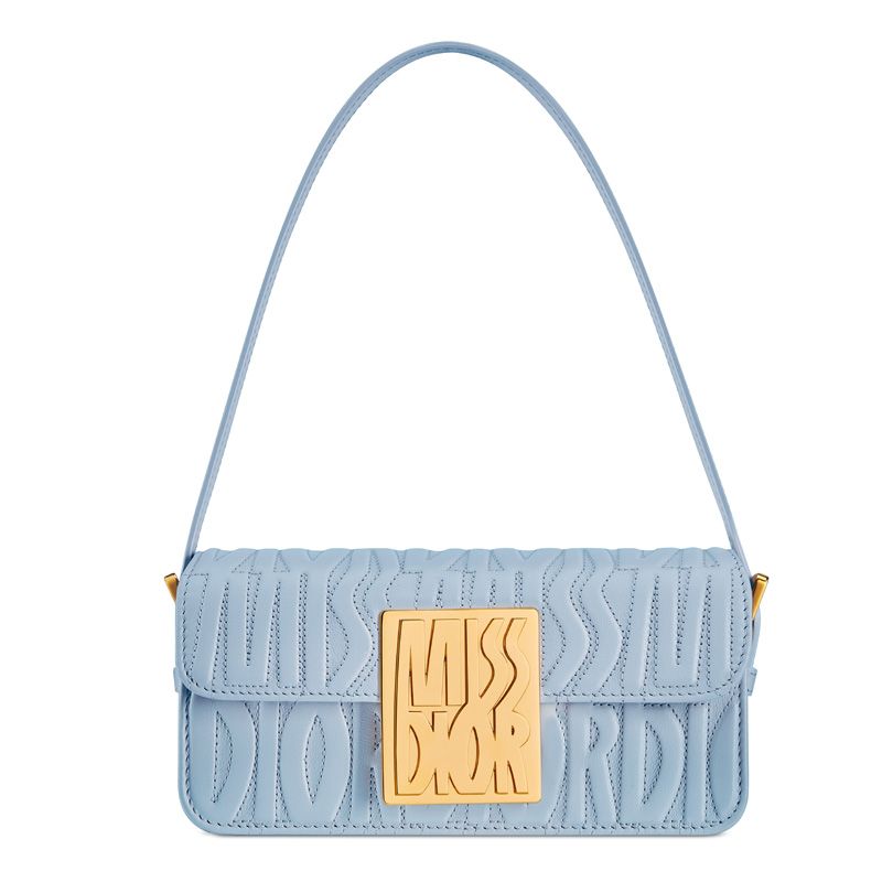 Transform your accessory game with the Miss Dior Flap Bag, a stunning piece that embodies elegance and sophistication. This exquisite Sky Blue handbag is crafted from quilted calfskin, featuring the renowned Miss Dior Allover motif, making it a striking addition to any wardrobe.