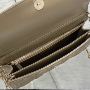 With a flap closure adorned by the iconic D.I.O.R. charm, this bag is not just an accessory; it’s a statement piece. The thoughtfully designed rear patch pocket ensures easy access to essentials, while the spacious interior boasts two compartments and three card slots, providing optimal organization for your belongings.