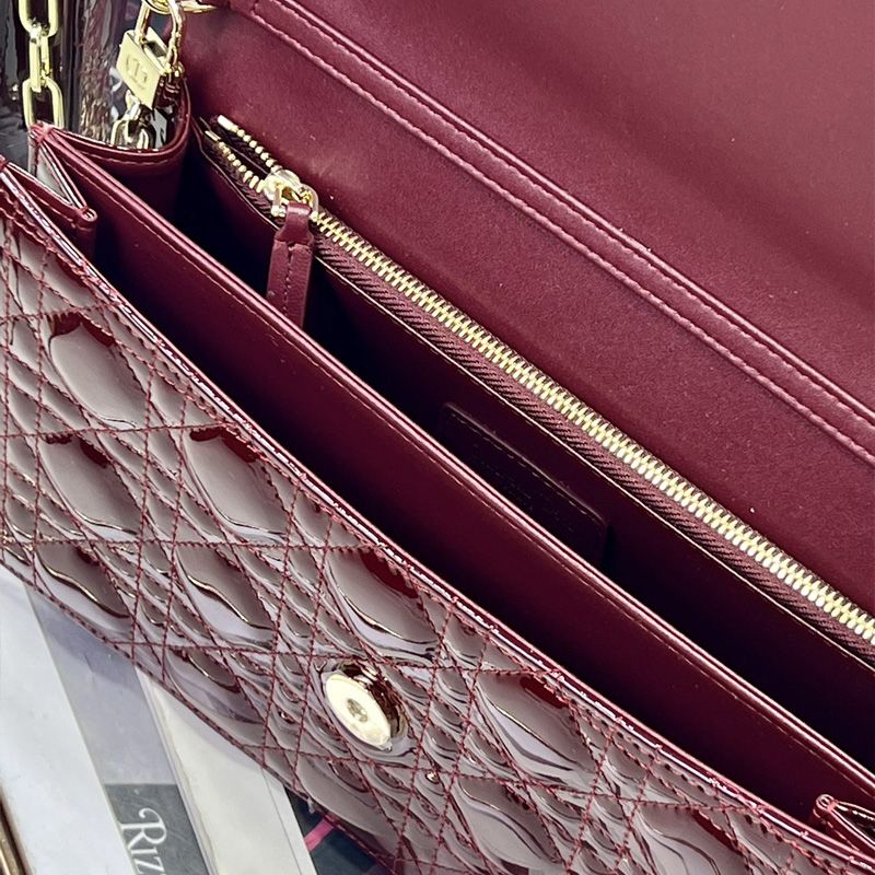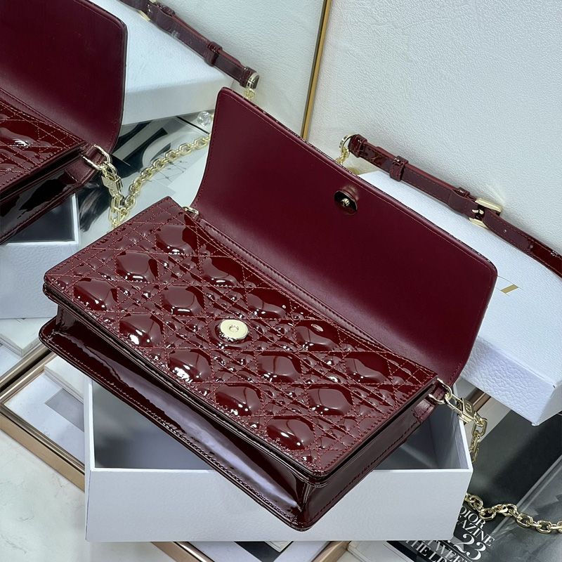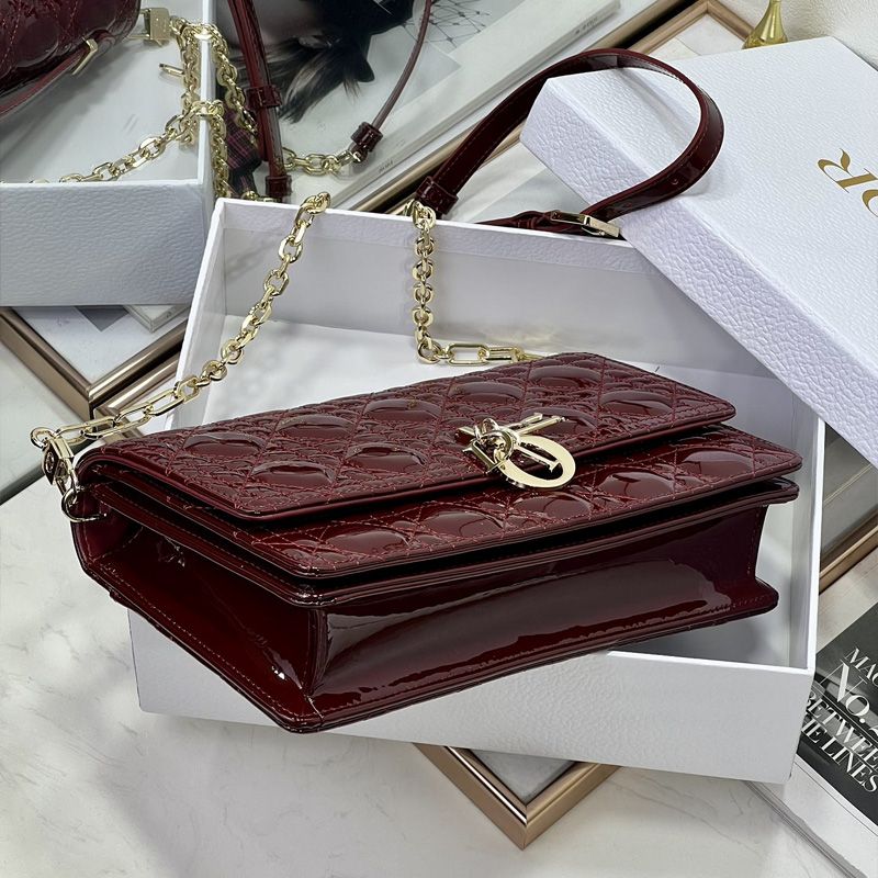Introducing the My Dior Top Handle Bag in a stunning Burgundy hue, a quintessential piece for any fashion-forward individual. Crafted from luxurious Patent Cannage Calfskin, this handbag embodies elegance and sophistication. Its design features a refined top handle and a versatile removable chain strap, allowing for effortless transitions from day to night.
