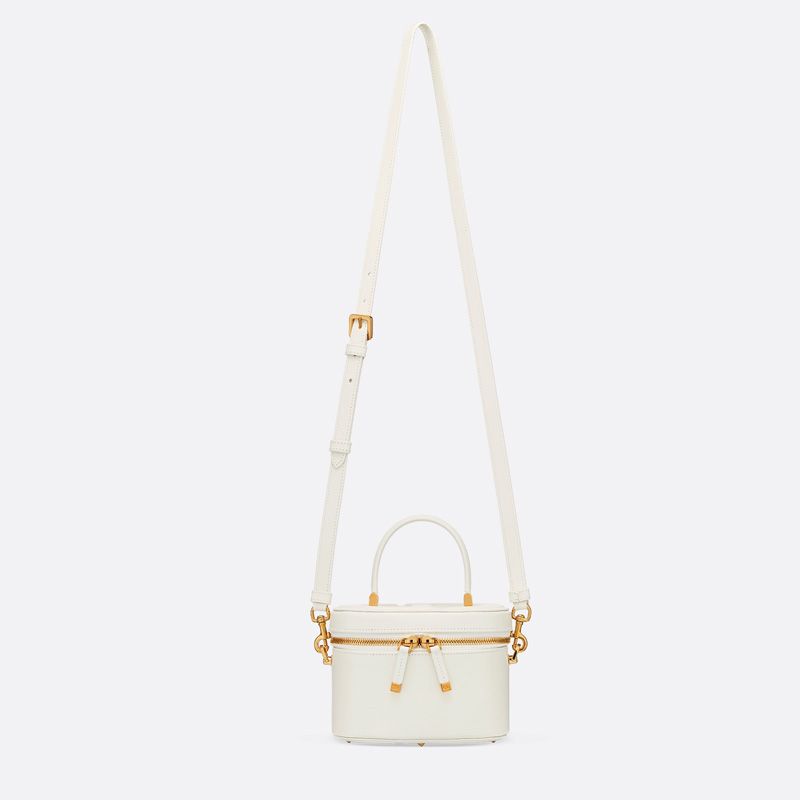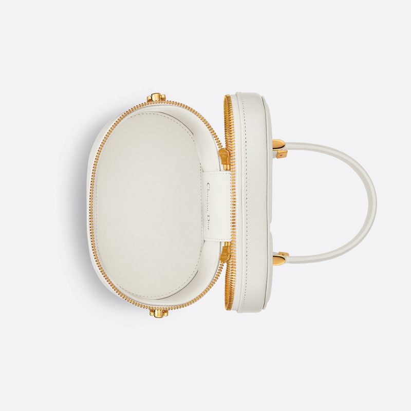 Elevate your luxury lifestyle with the Small Dior CD Signature Vanity Case in pristine white calfskin. This exquisite accessory embodies sophistication and style, making it a must-have for any fashion aficionado. Adorned with beautifully embossed CD signatures on both the top and bottom, it captures the essence of Dior’s iconic design.