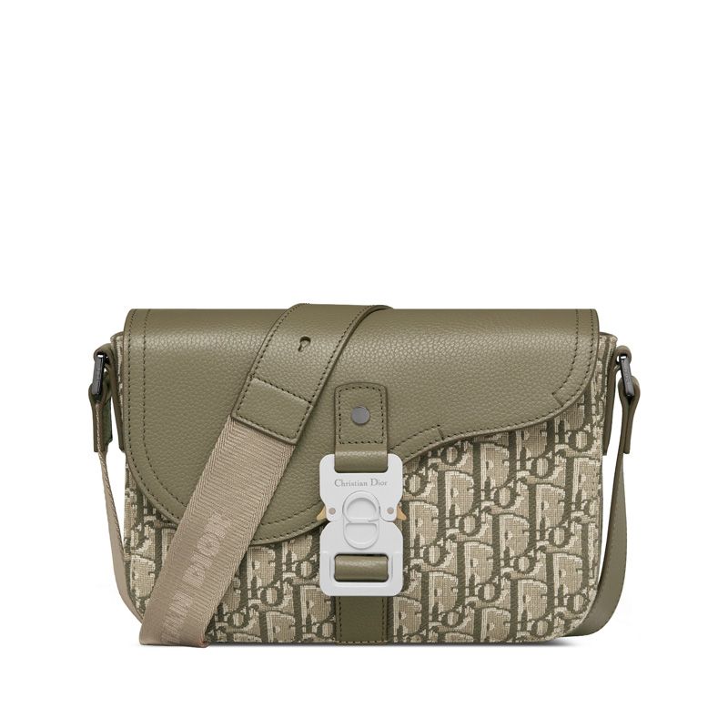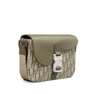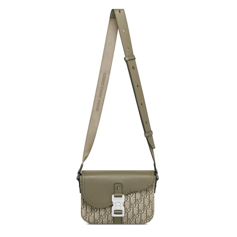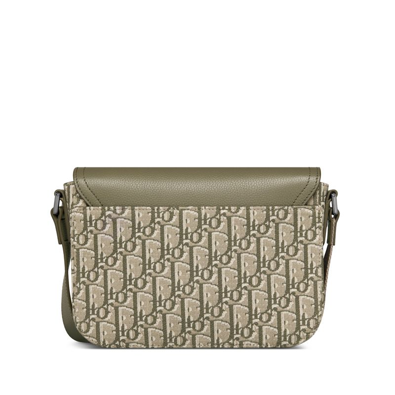 Small Dior Saddle Flap Messenger In Oblique Motif Canvas and Grained Calfskin Olive