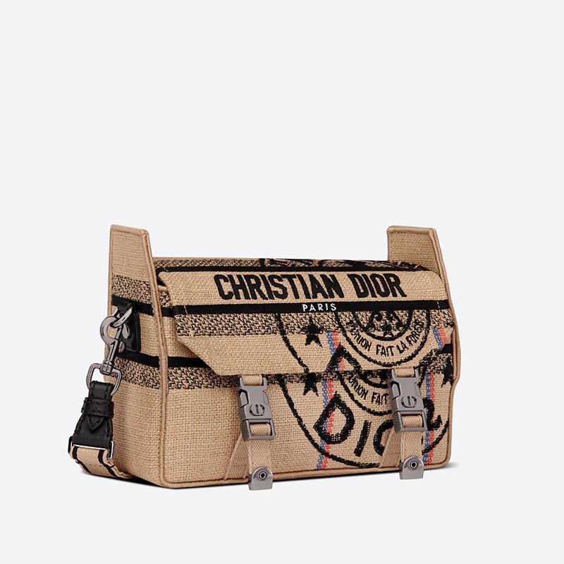 Introducing the Small Diorcamp Messenger in a chic Beige Jute Motif Canvas, a must-have accessory for the modern traveler. Picture yourself strolling through the vibrant streets of Paris, the iconic Christian Dior signature displayed elegantly on the front of your bag, radiating effortless sophistication.